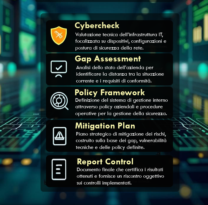Siamo tra le pochissime realtà in Italia a offrire un approccio fortemente verticalizzato sulle specifiche esigenze del settore NIS2, che integra strategia, tecnologia e conformità normativa in un unico percorso, semplificando ogni fase della compliance.